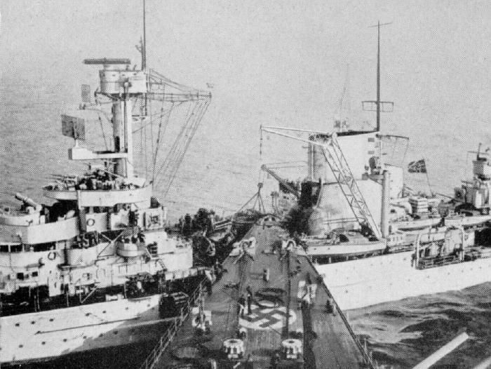 The Prinz Eugen was on a return voyage to the German controlled port in Gotenhafen, Poland, when, due to the thick fog, she rammed the German light Cruiser Leipzig amidship.